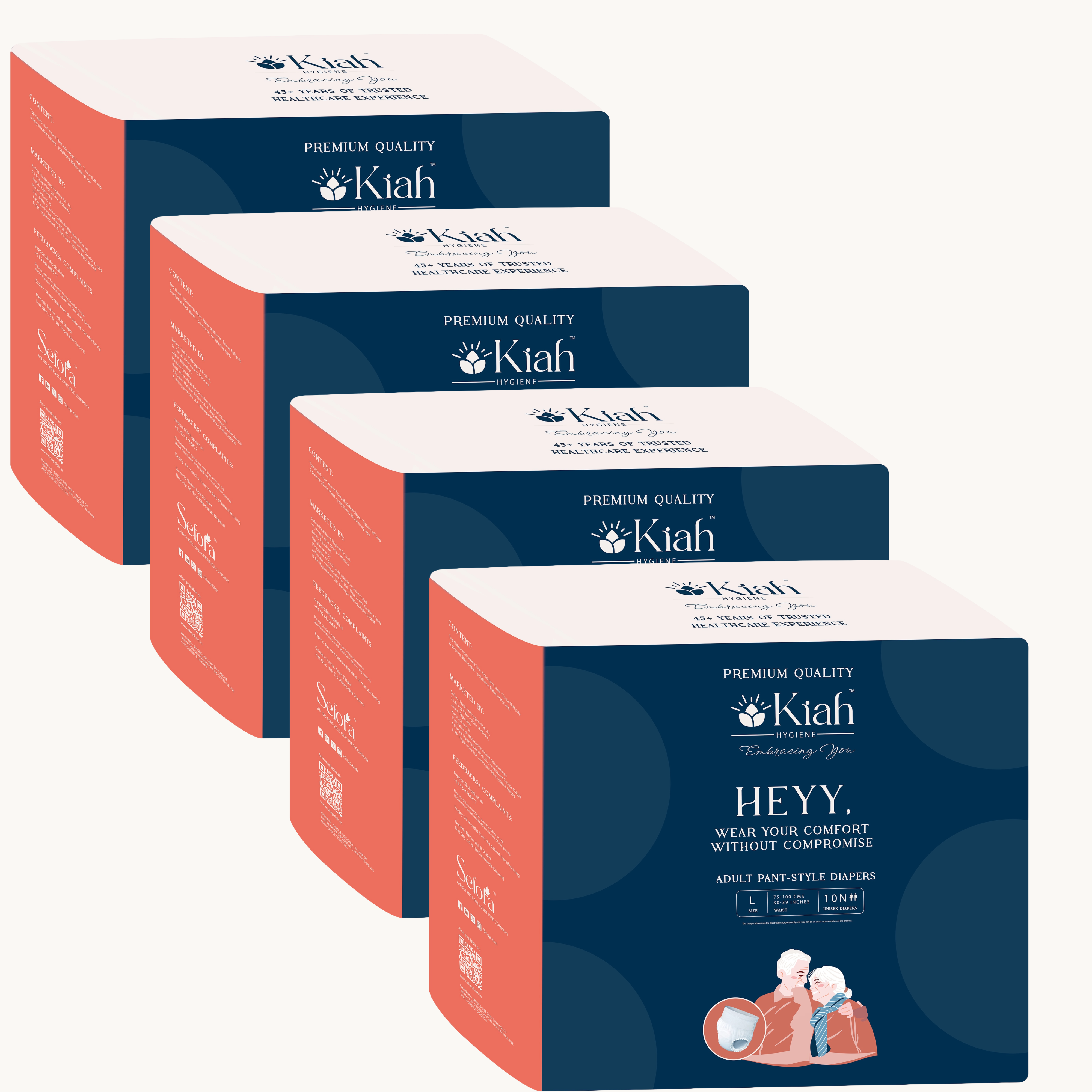 KIAH Pant Style Adult Diapers - Size L | Premium Pant Diapers |30"-39"