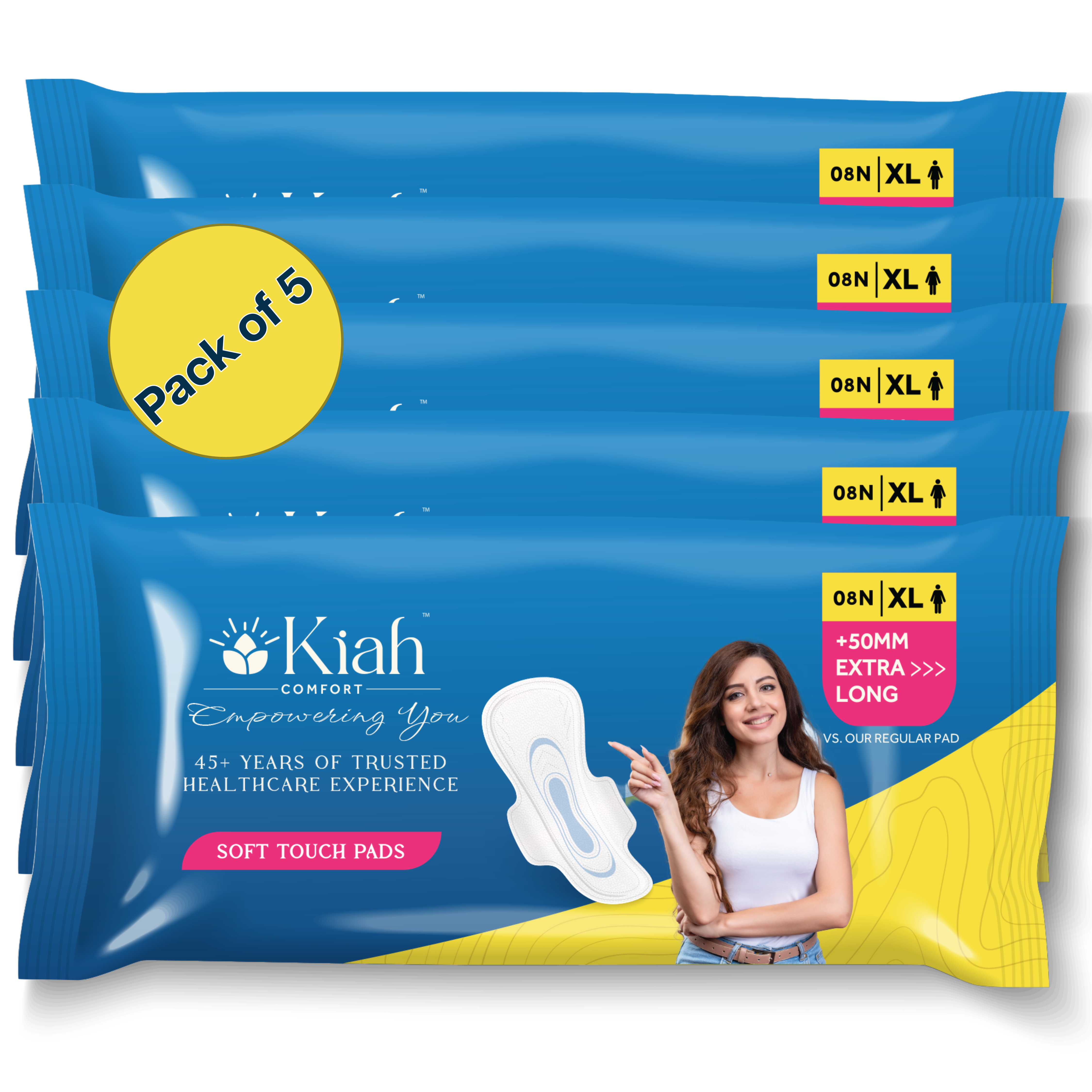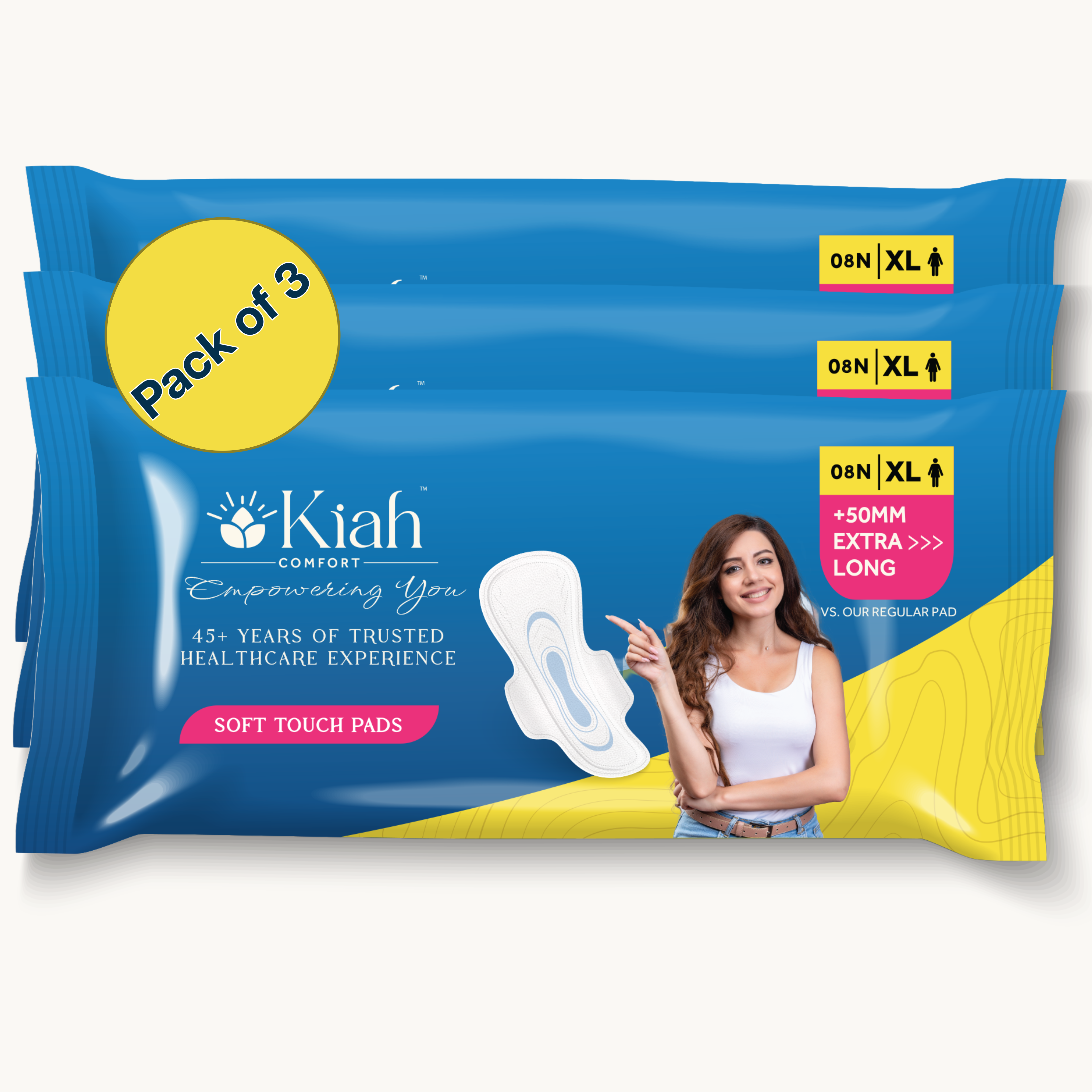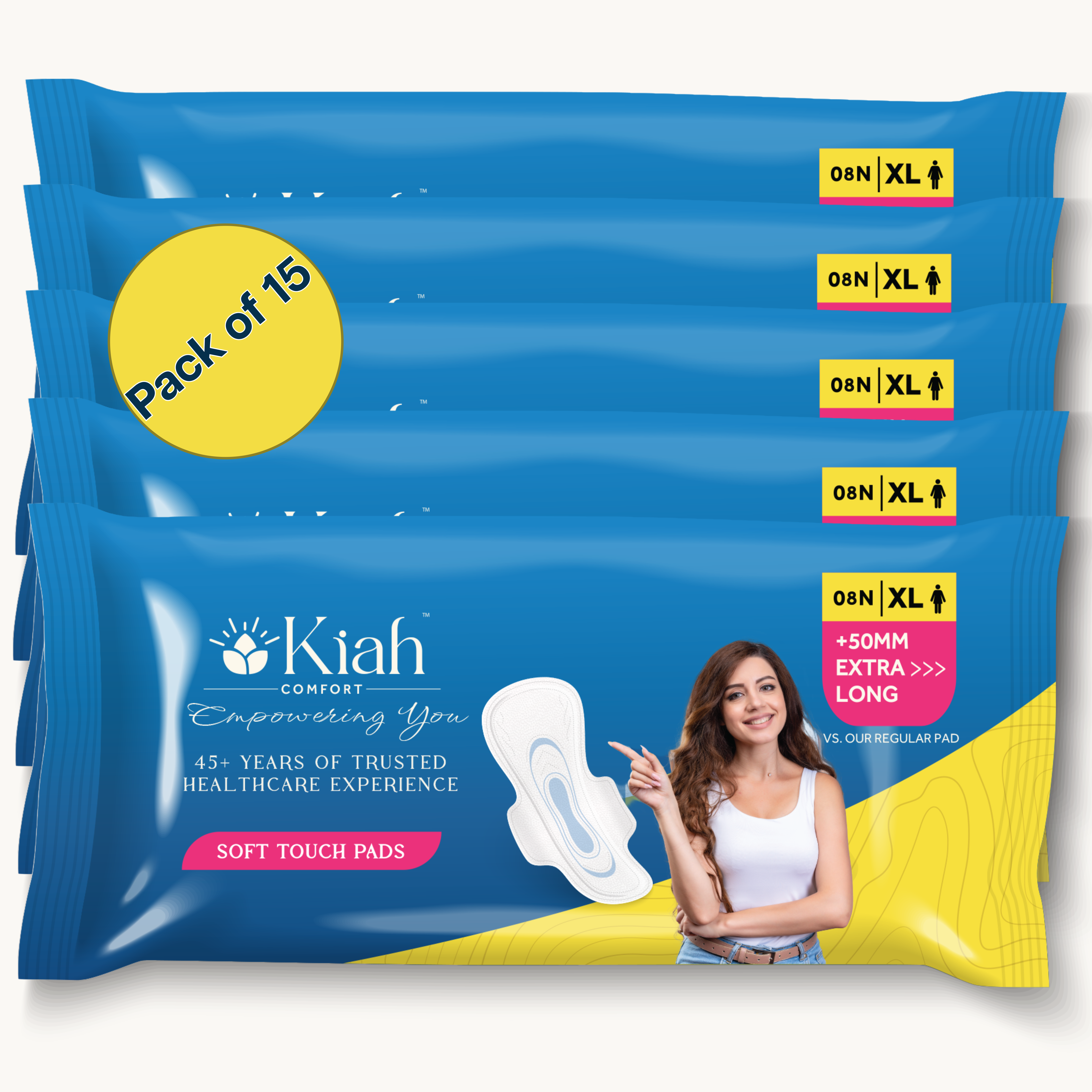 Dry Soft, Economical & Reliable Protection Experience affordable comfort and superior protection with Kiah Comfort Soft Touch Sanitary Pads, specially designed for women seeking both quality and value. Made from soft, breathable , these pads ensure a comfortable, rash-free experience, while offering advanced absorption technology for complete peace of mind during your period.