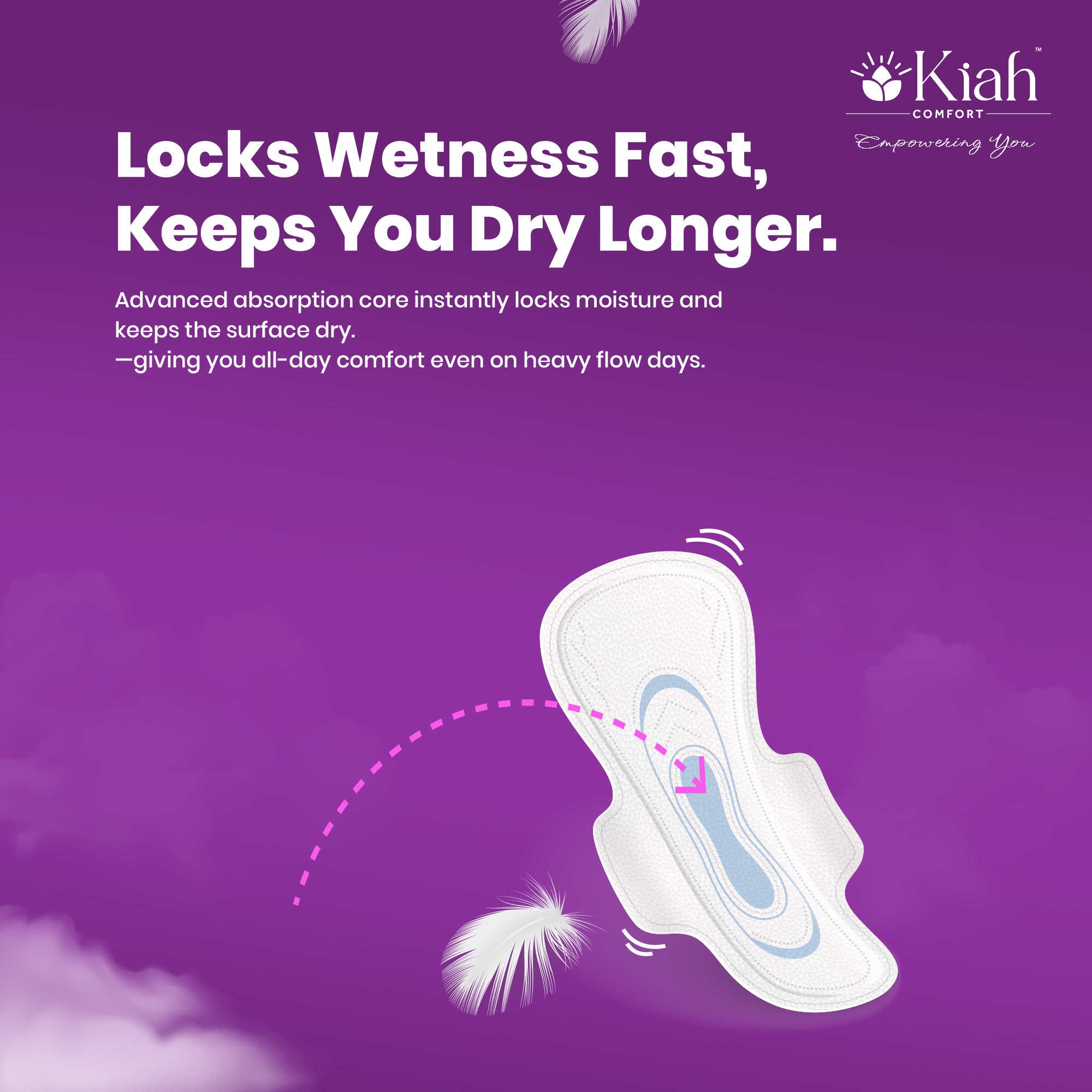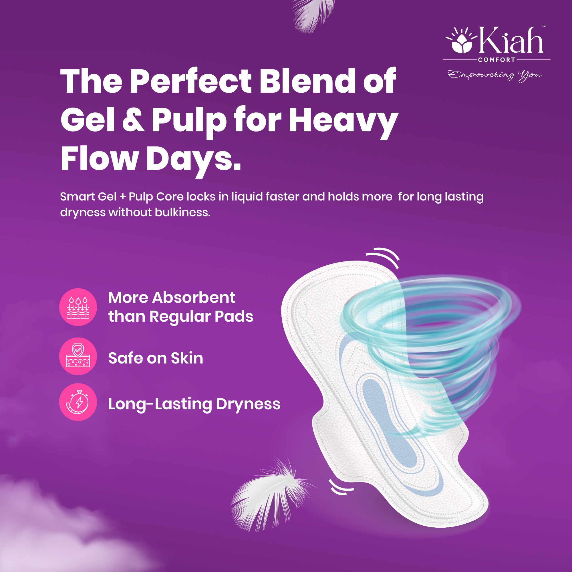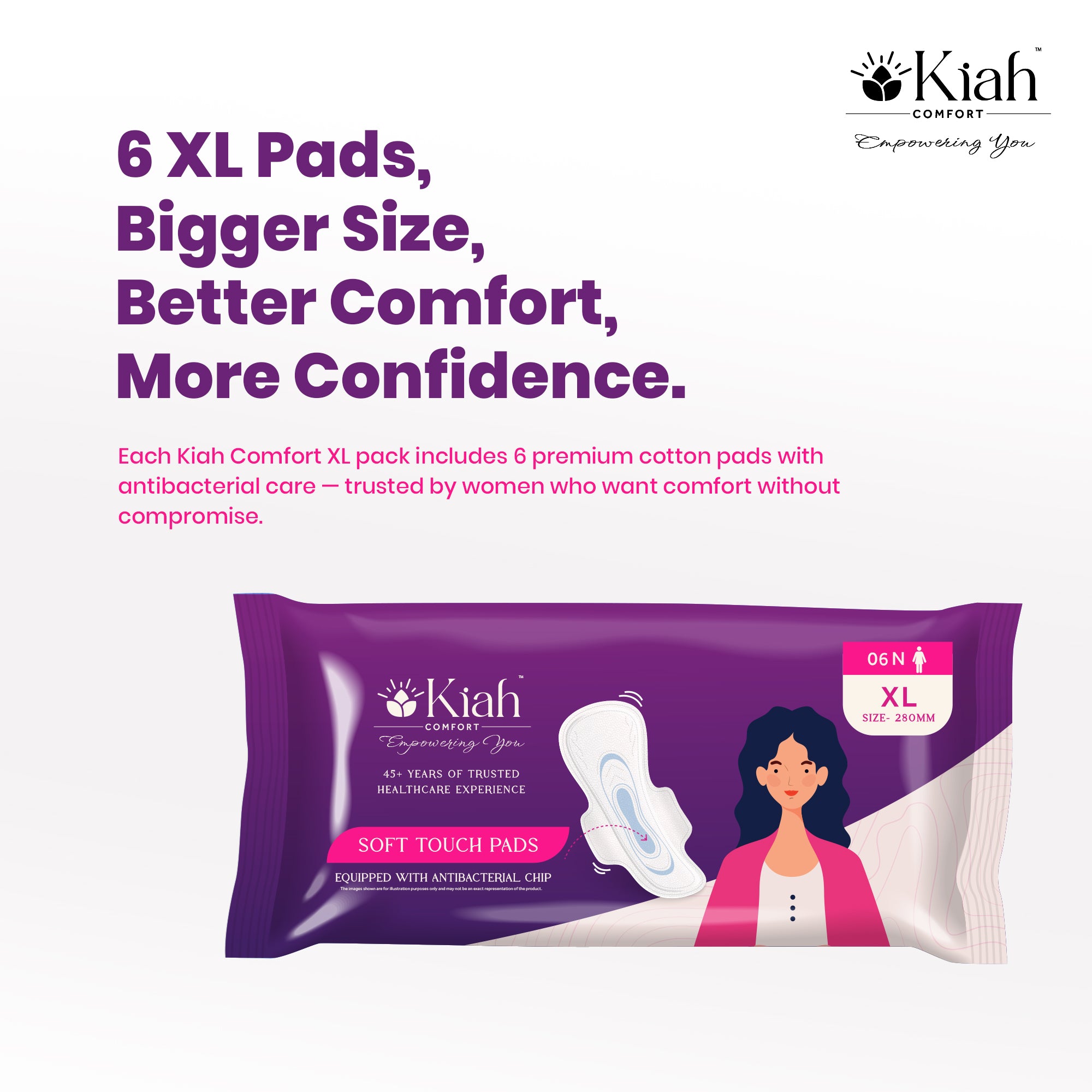 Cotton Soft, Economical & Reliable Protection Experience affordable comfort and superior protection with Kiah Comfort Soft Touch Sanitary Pads, specially designed for women seeking both quality and value. Made from soft, breathable cotton, these pads ensure a comfortable, rash-free experience, while offering advanced absorption technology for complete peace of mind during your period.